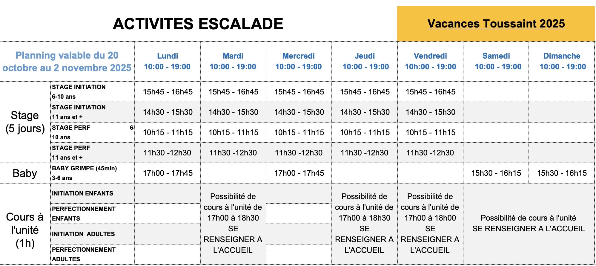11 ans et plus Stage 5 jours Initiation à l'escalade
